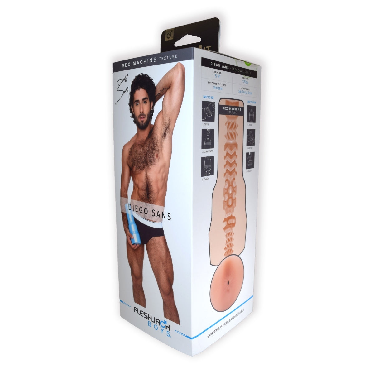 Plunge into the tight embrace of an ass that rarely sees action and teach Diego Sans the pleasures of being a bottom. The Sex Machine masturbator from Fleshjack Boys is intensely textured for lifelike anal sensations.