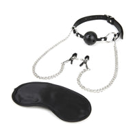 Lux Fetish Breathable Ball Gag With Adjustable Pressure Nipple Clamps Black Silver