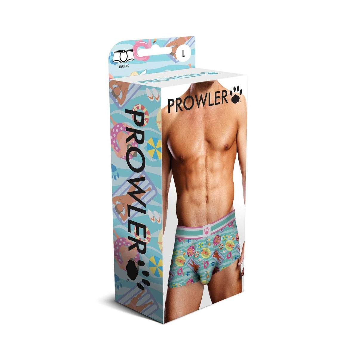 Are you ready to get a little playful If so, then the new Prowler Swimming Trunk is just what you need. These trunks are so soft and comfy, enhancing your pouch and rear, you'll want to wear them everywhere. These trunks are adorned with hunks lounging on floaties, which will make you feel like you're in the pool even when you're not! The Prowler signature paw print logo waistband adds an extra layer of fun.
